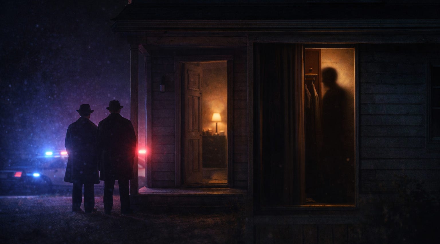 I found myself back at the house, drawn by some quiet need to see it again, to know it still existed in the same way I remembered. The front looked empty, but the glint of badges and the low hum of engines told me otherwise. Police vehicles lined the street. Detectives moved with purpose, unaware of my presence.
